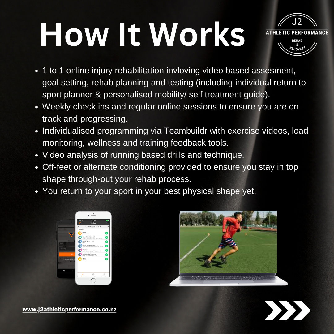 Our performance rehabilitation package offers you full access to J2’s specialised team to enhance your recovery and return to sport. If you want to rehabilitate to the level and standards of elite sport, then this package is for you. We will go through detailed assessment, testing, goal setting and rehabilitation planning to get you started and feeling in control of your recovery. We will then work closely with you through the rehab process, with weekly rehab sessions and regular testing/ monitoring to ensure we continue to work towards your goals. This model has been carefully developed through our experiences in professional sport with proven outcomes at the highest level.